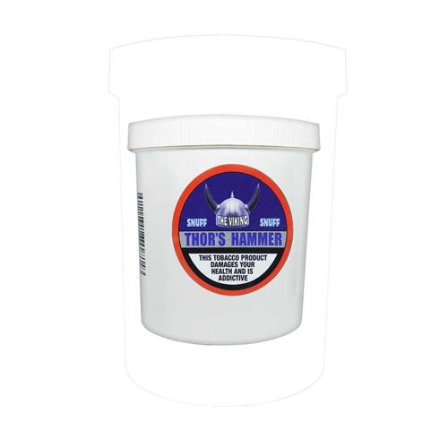 Viking Thor's Hammer is a robust, fire-cured snuff with a rich, earthy, and smoky aroma, accented by ammonia, leather, and hay notes. The grind is medium-coarse and moist, making it easy to take. The nicotine content is medium-high, and the snuff is praised for its strong, natural flavor and satisfying, lingering hit. The product is highly recommended for those seeking a bold, all-day snuff.