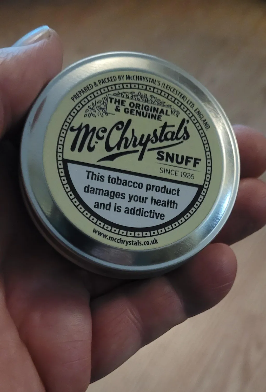 The menthol is restrained compared to other mentholated snuffs, allowing the tobacco base to come through. Secondary notes include spicy and smoky elements with subtle floral undertones. This is the oldest continuously produced snuff in the McChrystal's range.