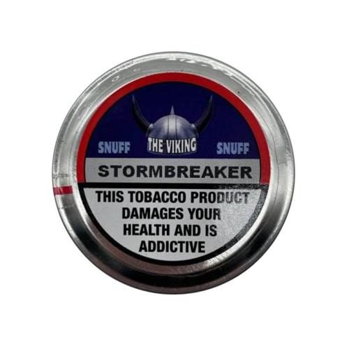 Viking Stormbreaker is a bold, mentholated snuff with a complex blend of menthol, eucalyptus, and spicy, citrus, and herbal notes. The grind is medium to coarse and moist, making it easy to take. The nicotine content is medium-high, and the snuff is praised for its robust, lingering flavor and satisfying burn. The product is suitable for both beginners and experienced users seeking a strong, invigorating snuff.
