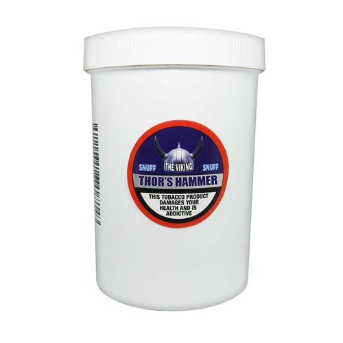 Viking Thor's Hammer is a robust, fire-cured snuff with a rich, earthy, and smoky aroma, accented by ammonia, leather, and hay notes. The grind is medium-coarse and moist, making it easy to take. The nicotine content is medium-high, and the snuff is praised for its strong, natural flavor and satisfying, lingering hit. The product is highly recommended for those seeking a bold, all-day snuff.