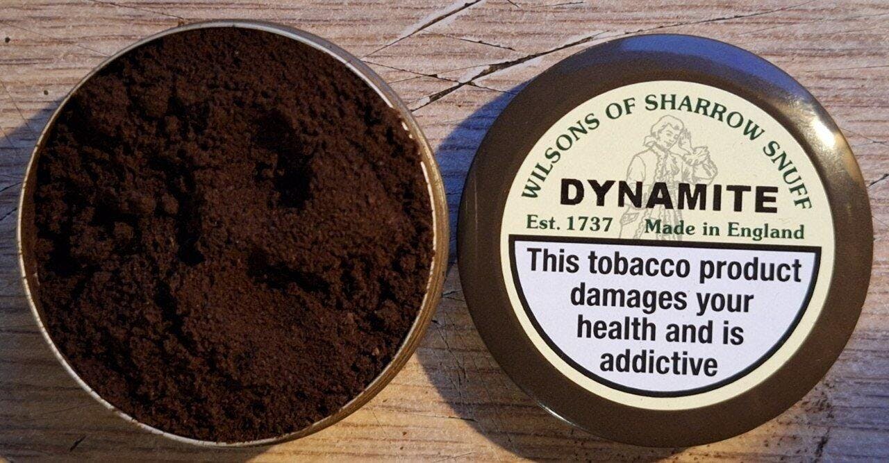 Wilsons Dynamite is a potent, mentholated snuff with a strong, cooling blend of menthol, peppermint, and eucalyptus, layered over a dark, smoky tobacco base. The grind is medium to medium-coarse and moist, making it easy to take. Nicotine is medium-high, and the snuff is praised for its intense, lingering flavor and satisfying punch. The blend is complex yet approachable, with a quality presentation and a robust, all-day usability.