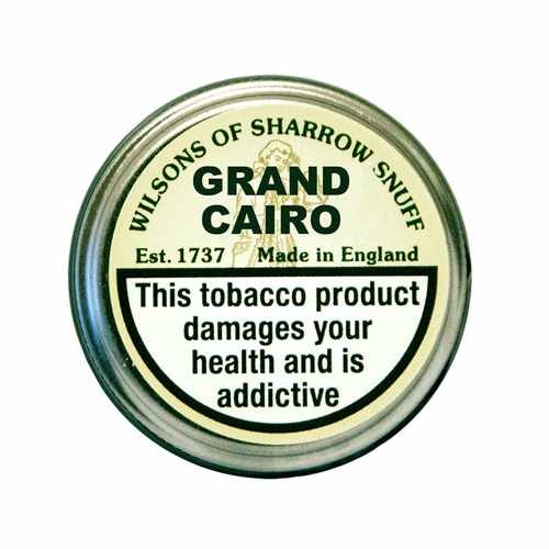 Wilsons Grand Cairo is a finely ground, dry SP snuff with a complex blend of citrus, bergamot, floral, and herbal notes. The grind is fine to medium-fine and dry to slightly moist, making it best suited for experienced users. The nicotine is high, and the snuff is praised for its long-lasting, rewarding aroma and lack of drip. The blend is sophisticated and versatile and highly recommended for SP enthusiasts.