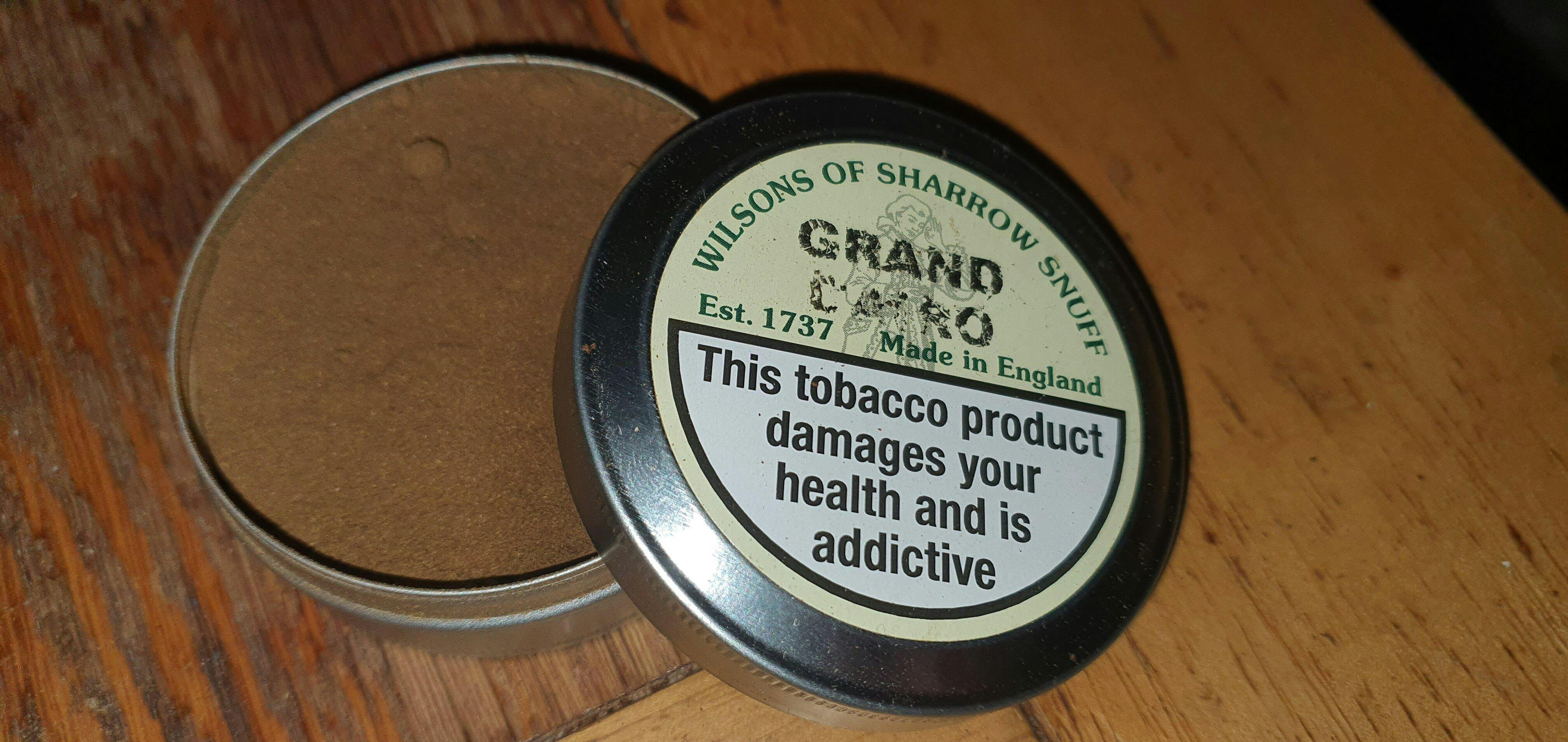 This Grand Cairo is an incredible snuff. Smells of antiquity, spice and tea. Easy on the nose, it is a perfect first pinch with your morning coffee. Great nicotine content.